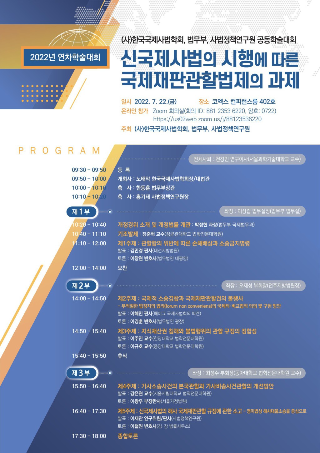 [(사)한국국제사법학회, 법무부, 사법정책연구원] 공동학술대회, 신국제사법의 시행에 따른 국제개판관할법제의 과제(7/22)