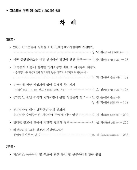 저스티스 통권 제190호 / 2022년 6월호 발간