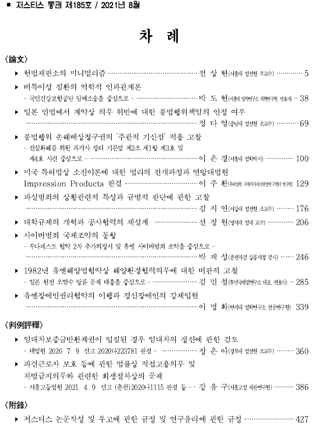 저스티스 통권 제185호 / 2021년 8월호 발간