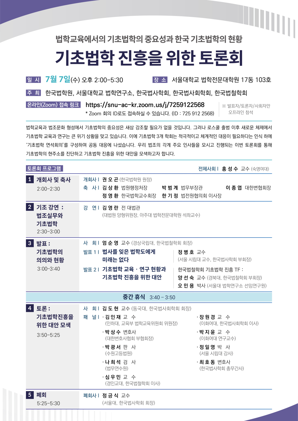 시 '기초법학 진흥을 위한 토론회'를 개최합니다.