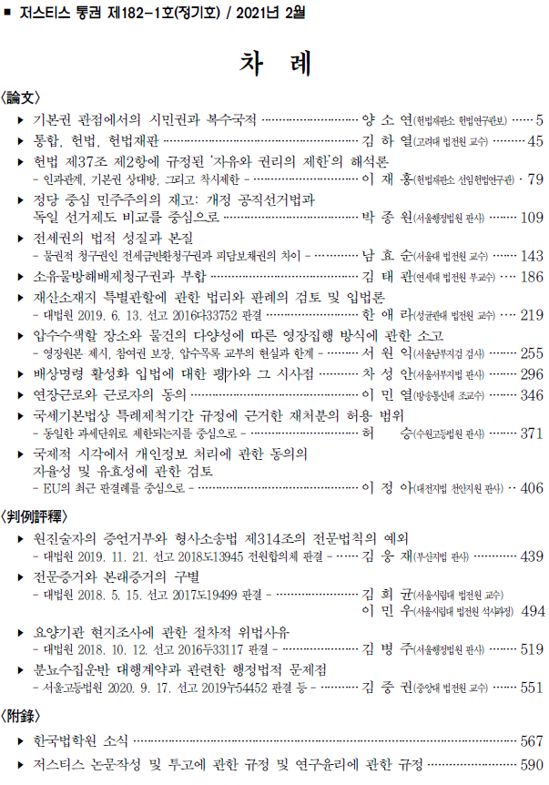 저스티스 통권 제182-1,2호 / 2021년 2월호 발간