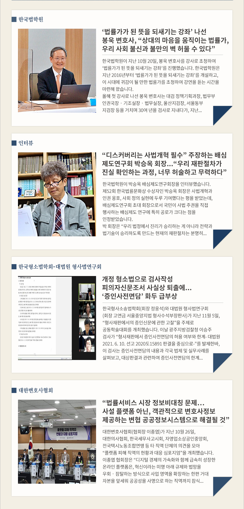 2021년 11월 23일 발간된 한국법학원 뉴스레터 제23호입니다.