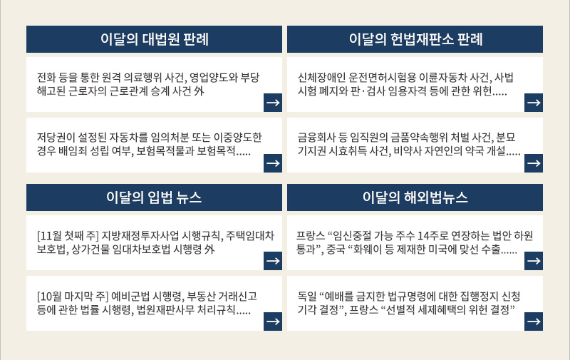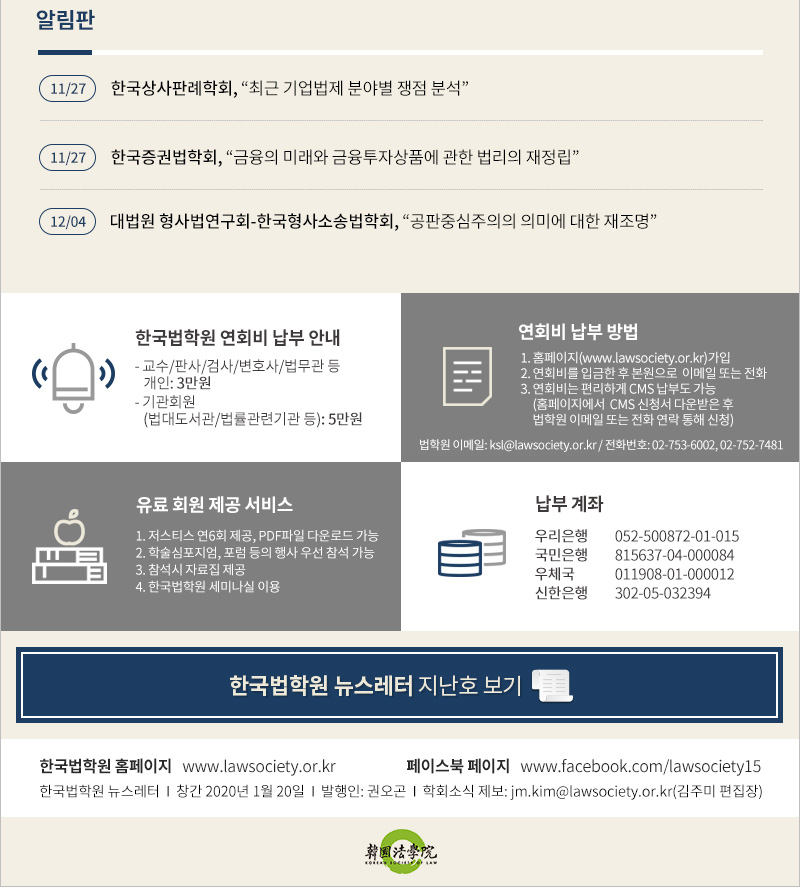 2020년 11월 19일 발간된 한국법학원 뉴스레터 제11호입니다.