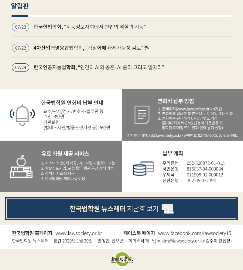 2020년 7월 21일 발간된 한국법학원 뉴스레터 제7호입니다.