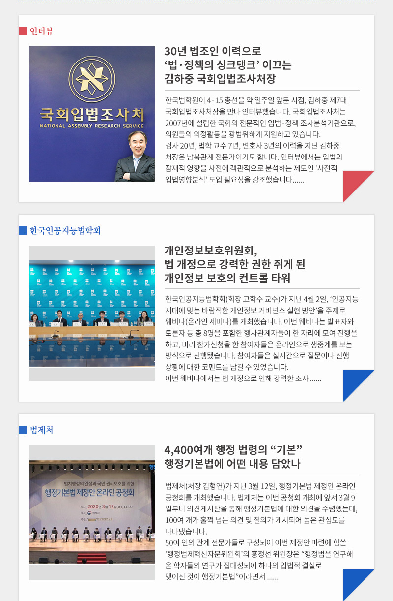2020년 4월 21일 발간된 한국법학원 뉴스레터 제4호입니다.