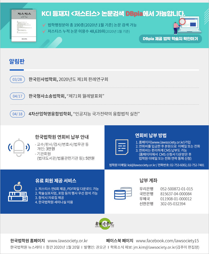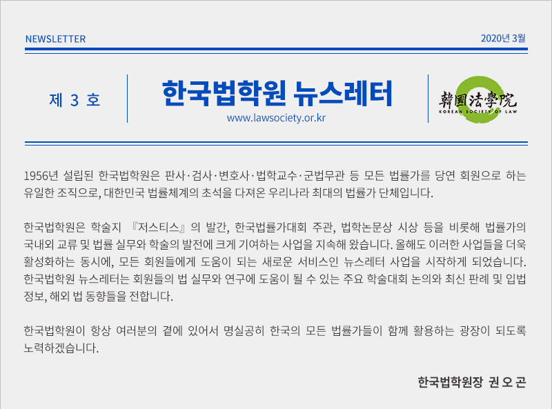 2020년 3월 20일 발간된 한국법학원 뉴스레터 제3호입니다.
