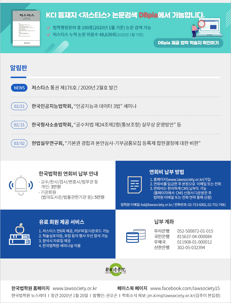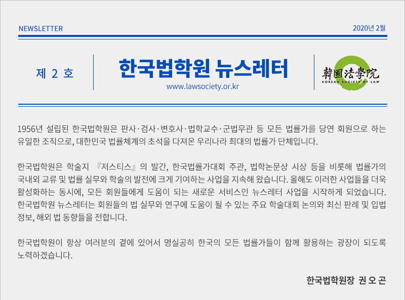 2020년 2월 20일 발간된 한국법학원 뉴스레터 제2호입니다.