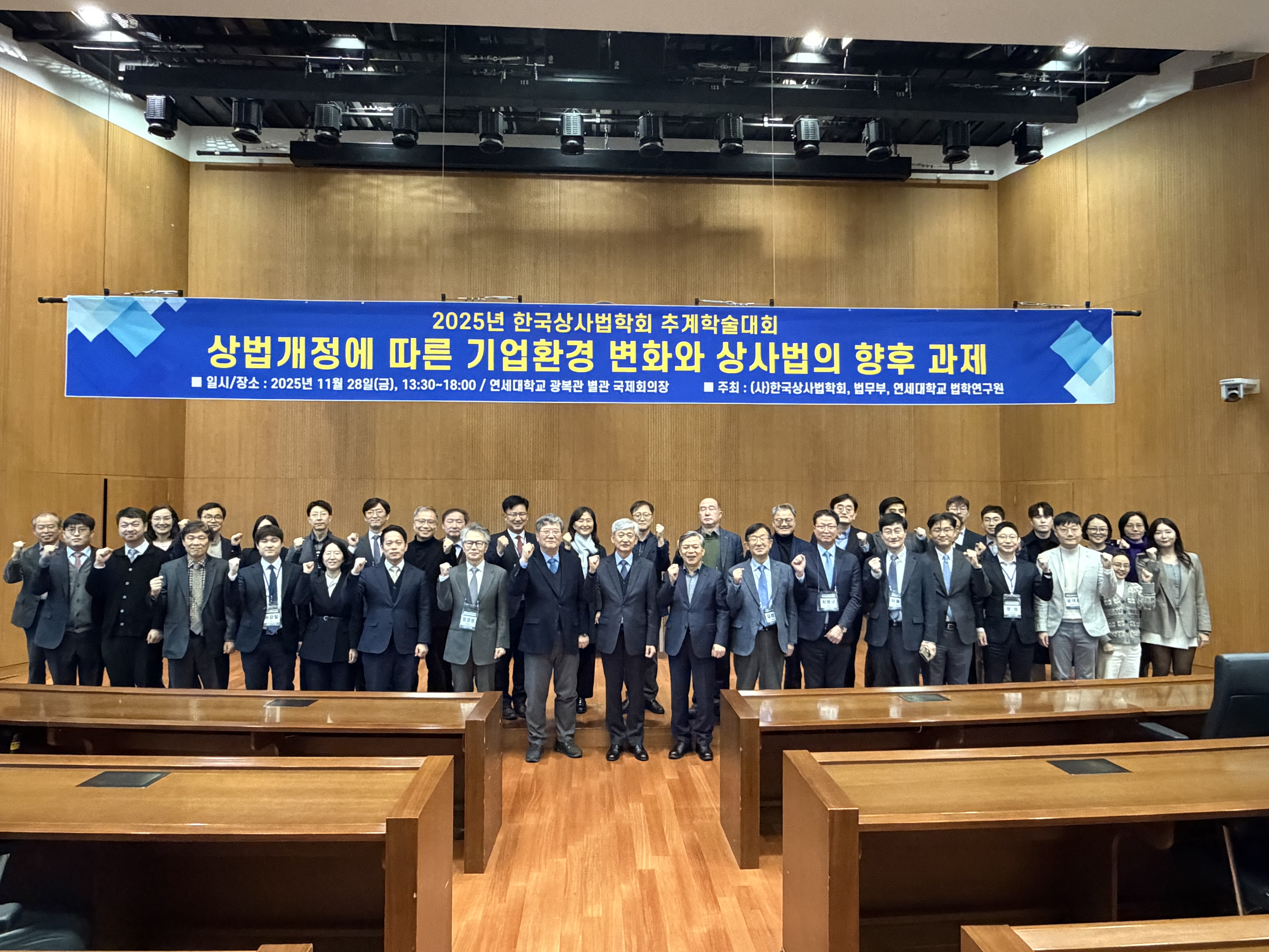 이기수 한국법학원장은 11월 28일 오후 연세대 법학전문대학원에서 열린 2025년도 (사)한국상사법학회(학회장 정준우) 추계학술대회에 참석했다. 이번 학술대회는 “상법개정에 따른 기업환경 변화와 상사법의 향후 과제”를 대주제로 진행됐다. 이 원장은 2002년 한국상사법학회 제12대 회장으로 취임해 2003년까지 학회 발전을 위해 봉사한 바 있다.