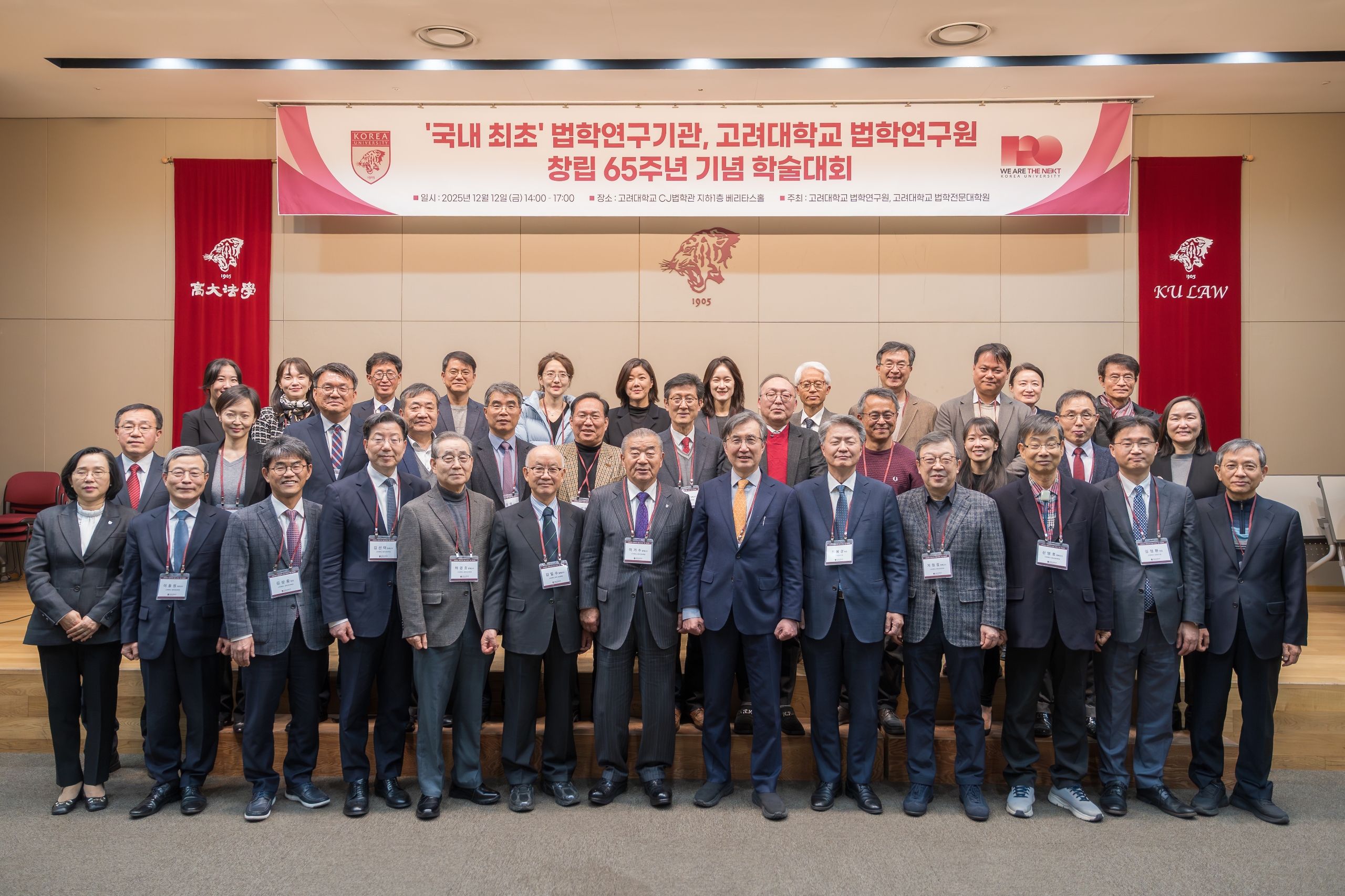 이기수 한국법학원장은 12월 12일 오후 고려대학교에서 열린 고려대학교 법학연구원(원장 이주원) 창립 65주년 기념 학술대회에 참석했다. 고대 법학연구원은 1960년 12월 10일 국내 최초로 설립된 대학 부설 법학연구기관이다. 현재 기초법, 공법, 민사법 연구센터 등 총 29개의 전문연구센터를 운영하고 있으며, 학술지 발간, 연구도서 간행, 국제학술대회 개최 등 다양한 학술사업을 이어오고 있다. 이날 학술대회는 고대 법학연구원의 역사적 성취와 한국 법학의 주요 학문 전통, 그리고 오늘날 법학이 직면한 쟁점을 폭넓게 논의하는 자리로 마련됐다.