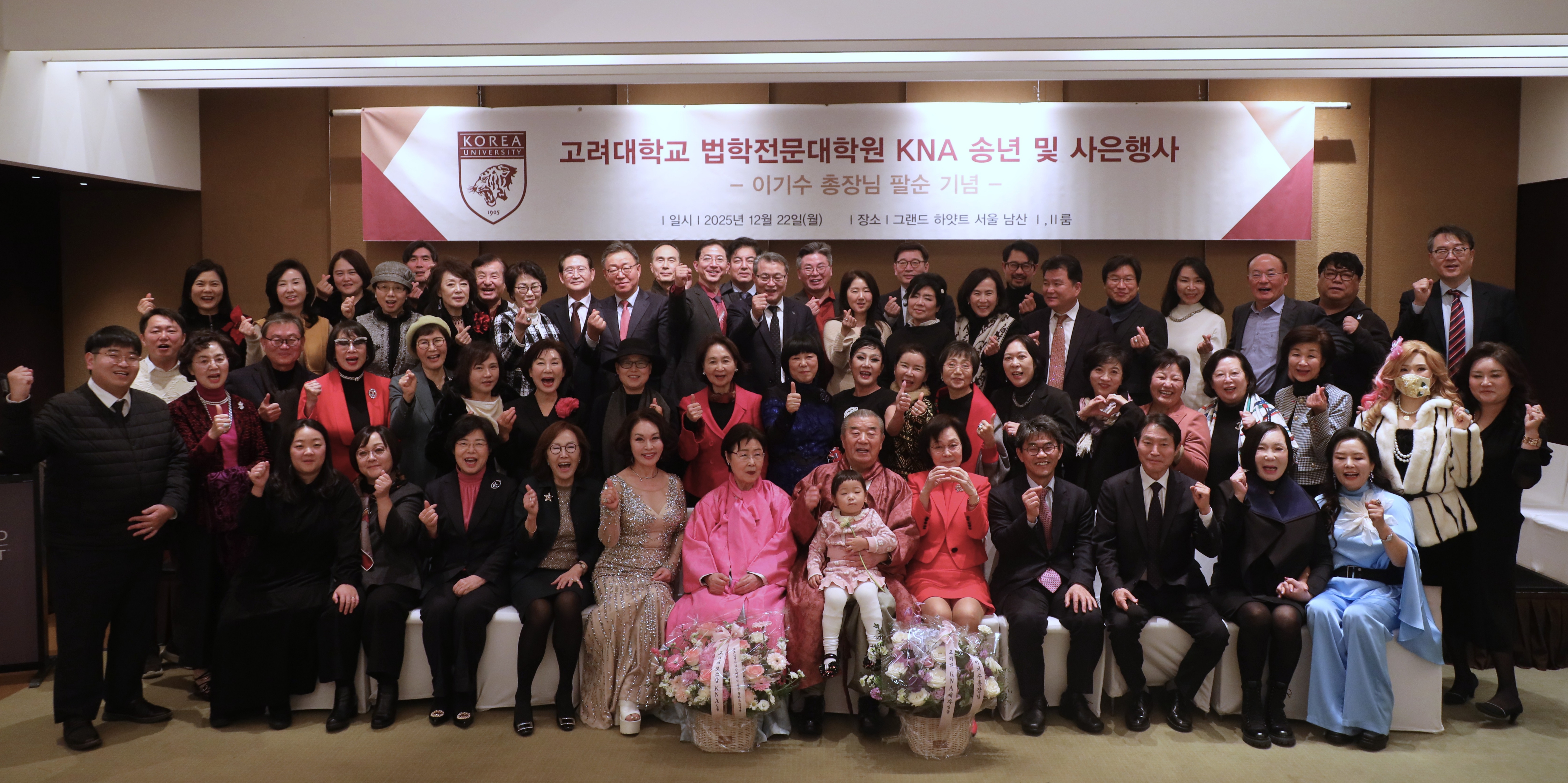 이기수 한국법학원장은 12월 22일 오후 고려대학교 법학전문대학원 KNA 최고위과정(주임교수 이양복) 주최로 그랜드하얏트서울에서 열린 ‘KNA 송년 및 사은행사’에 참석했다. 이번 행사는 이 원장의 팔순을 기념해 마련된 자리로, 참석자들은 KNA 과정을 헌신과 열정으로 이끌어 온 이 원장에게 감사의 인사를 전했다.