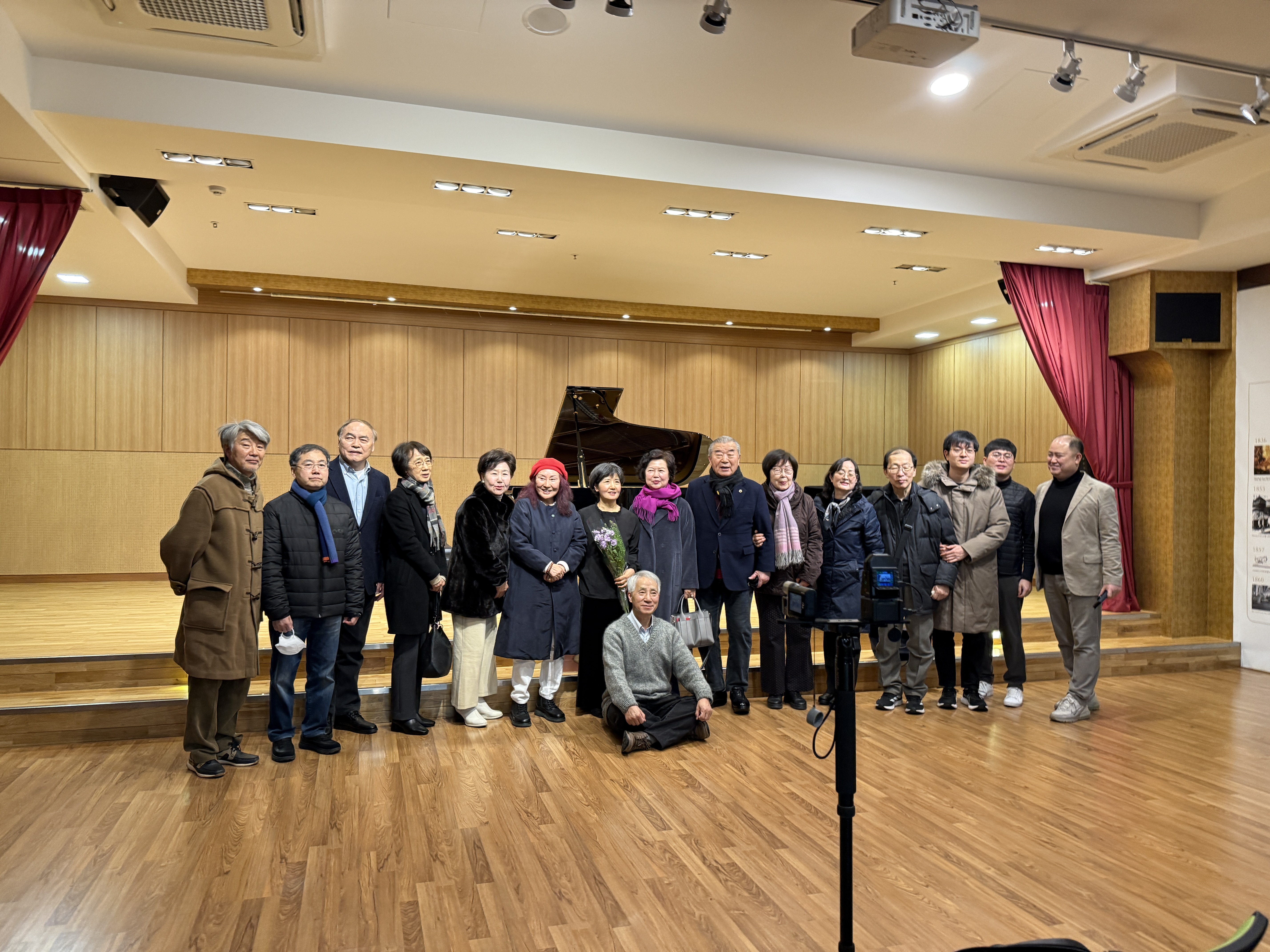 이기수 한국법학원장은 12월 28일 오후 서울 서초구 코스모스아트홀에서 열린 피아니스트 송희(여주대 교수)의 피아노 독주회를 관람했다. 송희 교수는 이 원장이 독일 튀빙겐(Tübingen) 대학에서 유학할 때에 함께 공부한 구자윤 후배(앉아 있는 분)의 부인으로서 함께 공부한 인연이고, 튀빙겐 대학에서 함께 수학한 동문들과 기념 촬영을 하며 뜻깊은 시간을 가졌다.