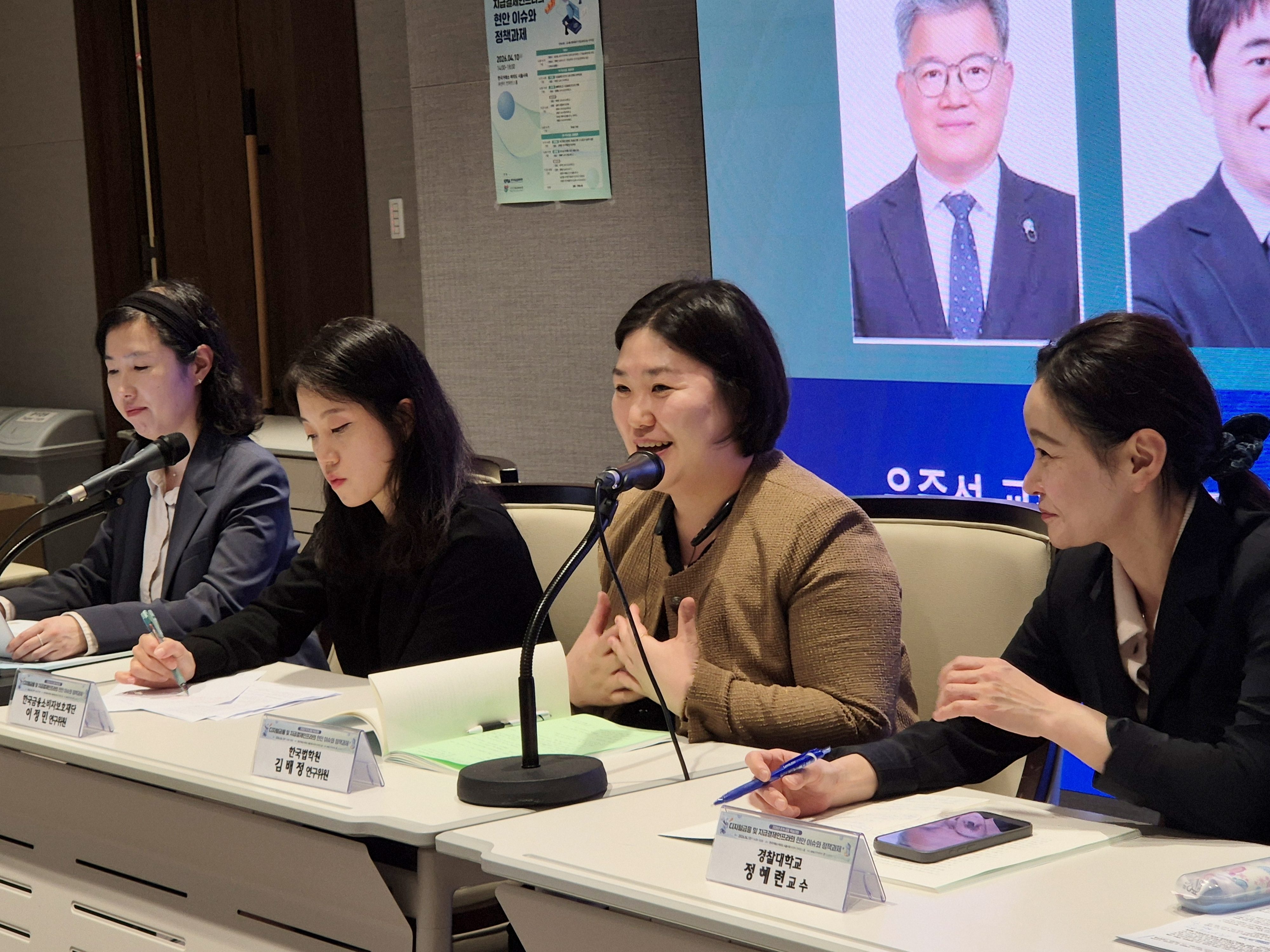 한국법학원 학술연구부 상사팀 연구위원인 김배정 박사는 (사)디지털금융법포럼(회장 윤성승) · 한국지급결제학회(회장 류혁선)가 공동으로 주최한 2026년 춘계공동학술대회에 참석하였다. 이번 학술대회는 4월 10일 한국거래소 여의도 서울사옥 IR센터 컨퍼런스 홀에서 ‘디지털금융 및 지급결제인프라의 현안 이슈와 정책과제’ 라는 주제로 개최되었다.